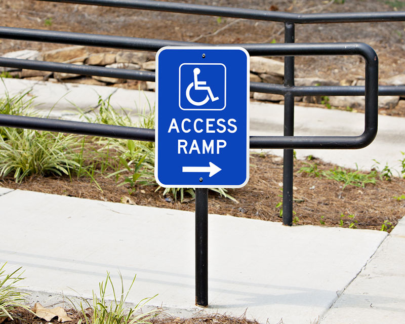 • • Check out our highly visible directional ramp access signs to help organize your entryways.