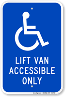 Each van accessible parking space needs a sign that features the ISA (International Symbol of Access) icon for handicap parking and the words “Van Accessible.” This must be installed on a post, wall, or fence, as long as it is at least 60 inches (ADA Chapter 502.6) off the ground. You can choose the option of using a main sign plus a supplemental sign or it’s a little cheaper to have all the information on one Reserved Parking Van Accessible Sign. Make sure to check with your state or local authorities for any specifics.