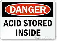 Acid warning signs alert workers to the presence of corrosive acids. They use headers from our osha danger signs or "corrosive" labels and often include instructions for specific PPE. View the full range in our acid warning signs category.