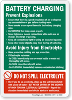OSHA requires battery charging stations to be located in designated battery charging areas. We have a large variety of Battery Warning Signs to indicate where these charging stations are, and what precautions should be taken.