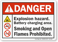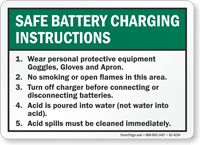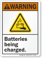 OSHA requires battery charging stations to be located in designated battery charging areas. We have a large variety of Battery Warning Signs to indicate where these charging stations are, and what precautions should be taken.