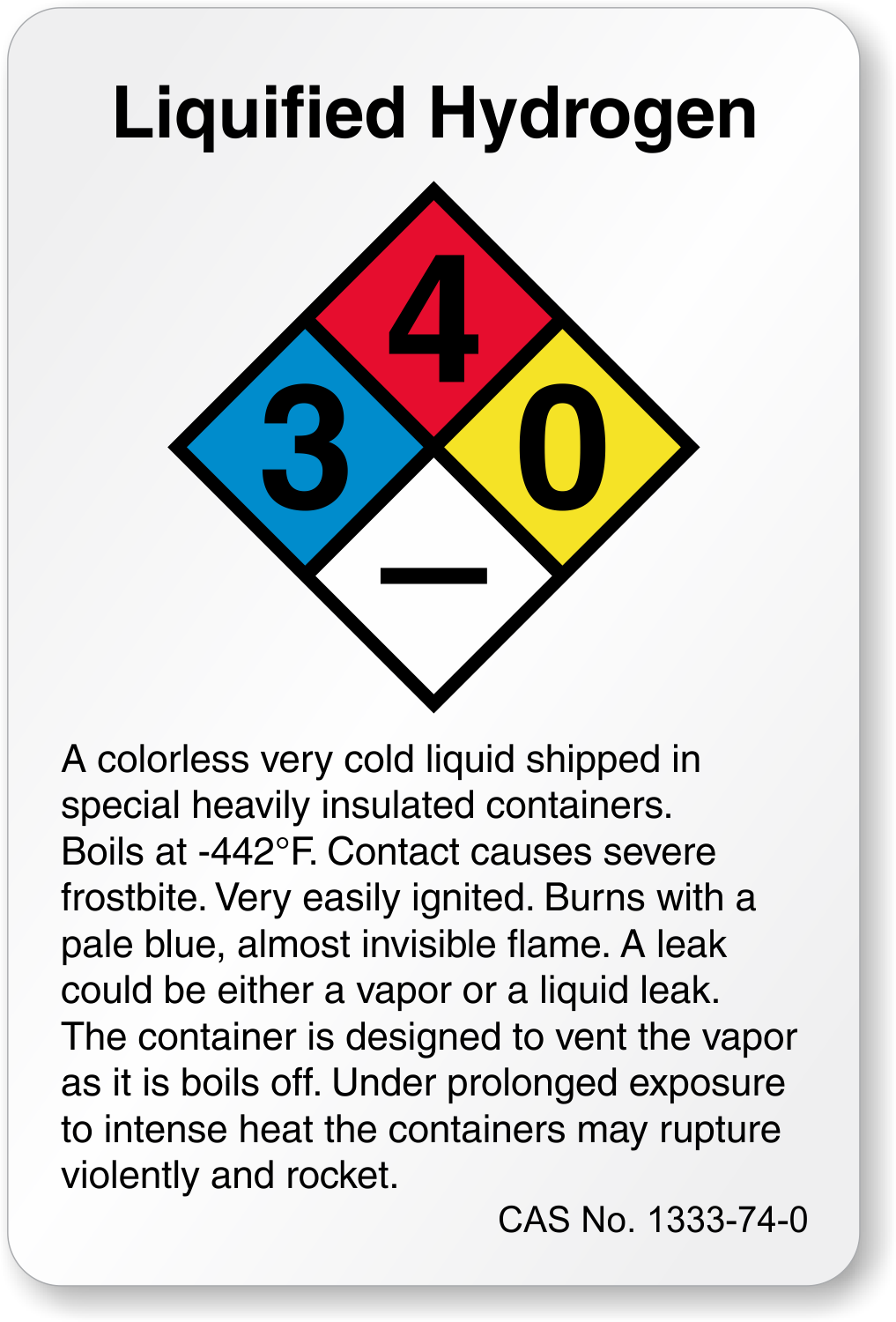 Liquified Hydrogen Chemical Label: NFPA Design