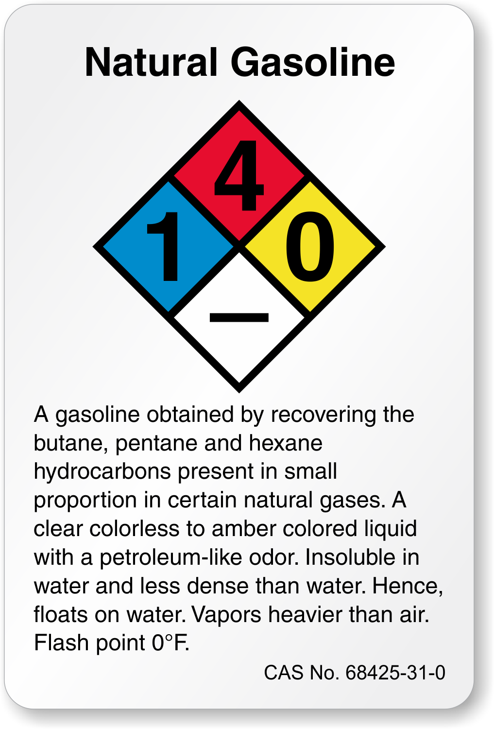 Natural Gasoline Chemical Label: NFPA Design