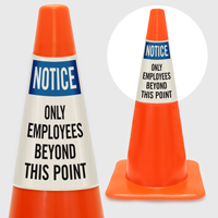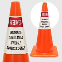 Yes. Our cone message collars are made from durable materials that hold up in outdoor conditions, making them suitable for parking lots, construction sites, loading docks, and outdoor event areas. Paired with standard orange traffic cones, they create highly visible, informative warnings that communicate the specific hazard or restriction beyond what a bare cone conveys on its own.