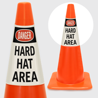 We carry cone message collars that slide directly onto any standard traffic cone to add a specific safety message without replacing the cone. Available in a range of stock messages and custom options, our cone collars are portable, reusable, and easy to deploy wherever a more informative cone-based warning is needed in a warehouse, parking lot, or construction area.