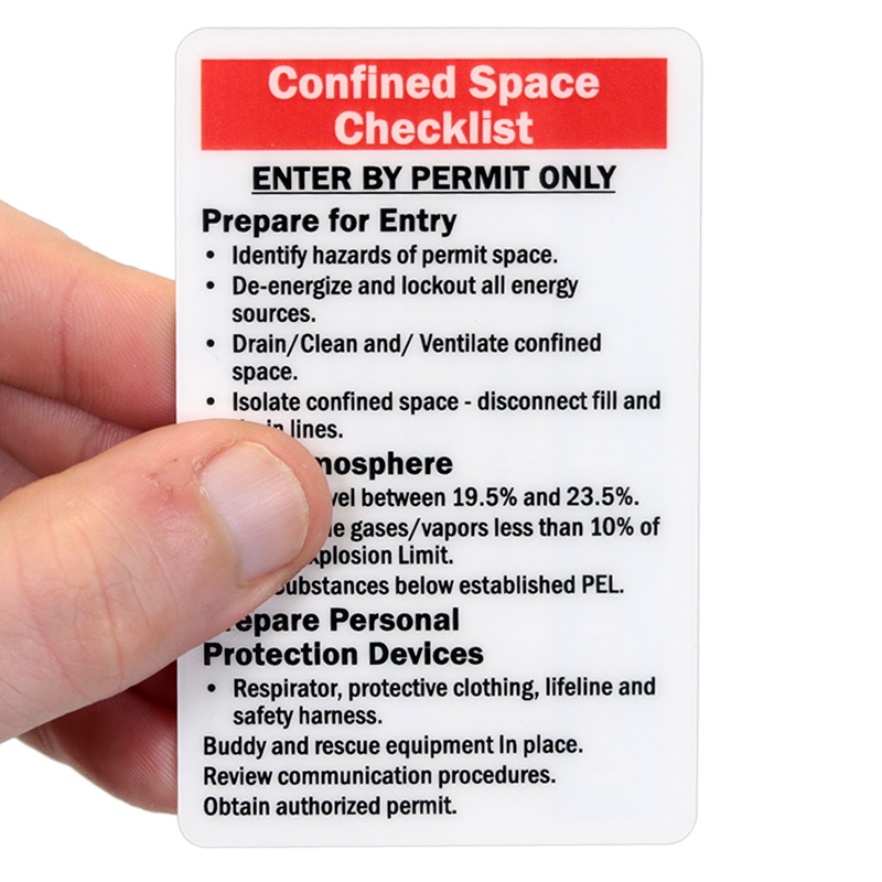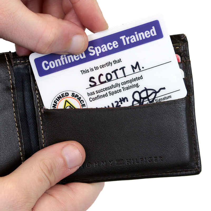 Self Laminating Certification Wallet Card (2-Sided): Confined Space Trained - Successfully Completed Confined Space Training (Front) / Confined Space Checklist (Back)