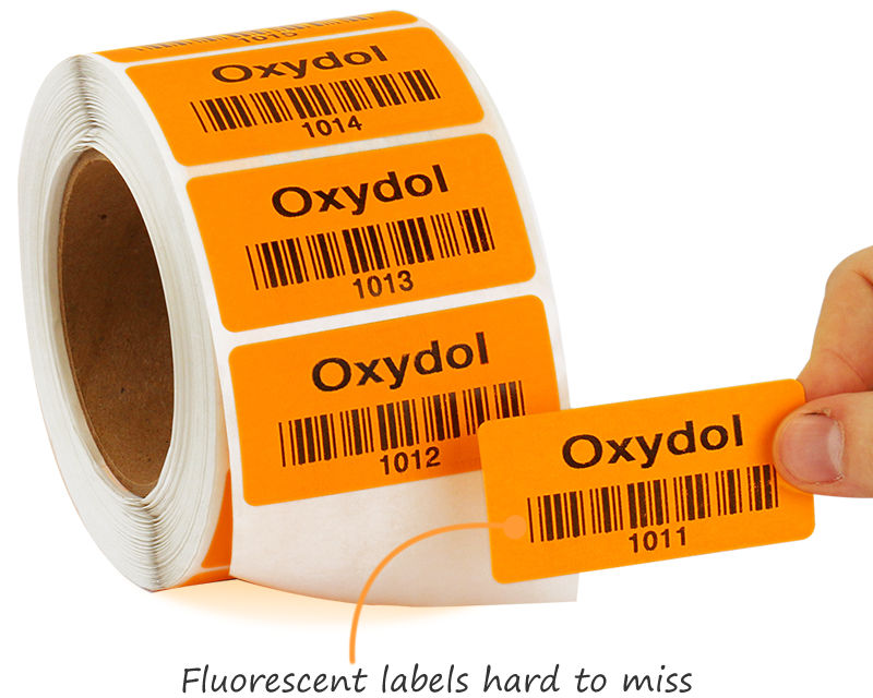 Consecutive number labels are made from 65#/4 mil ultra-smooth fluorescent coated paper paired with a 40#/2.4 mil waxed liner. This combination provides a smooth, writable surface that is lightweight, cost-effective, and ideal for short-term indoor labeling, identification, and inventory management applications.