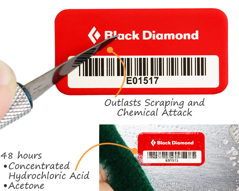 • Legend, color and barcode serial numbers are impregnated into the aluminum through chemically etched silver compounds.