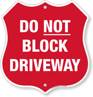 An 18x12 inch or 24x18 inch sign is typically large enough to be clearly read from a parked car or passing vehicle, and our do not block driveway shield sign is an eye-catching oversized option designed for maximum visibility at busy or wide driveway entrances where a standard-size sign may not be enough.