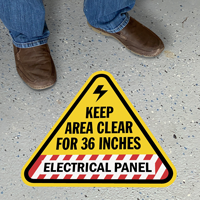 • • Do Not Block Electrical Panel Signs, Electrical Panel Keep Clear Signs - OSHA section 1926.403 clearly indicates to keep a minimum clearance of 30" to 48" around the electrical panel.