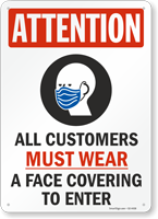 Face covering required signs should be used in all public spaces to help prevent the spread of the virus, including parking lots, pavements, take outs and, drive-ins You can use BigBoss A-frame signs, Stand-up Floor Signs, and the hard-to-miss SignPosts to urge your customers to wear a mask as they wait in their cars.