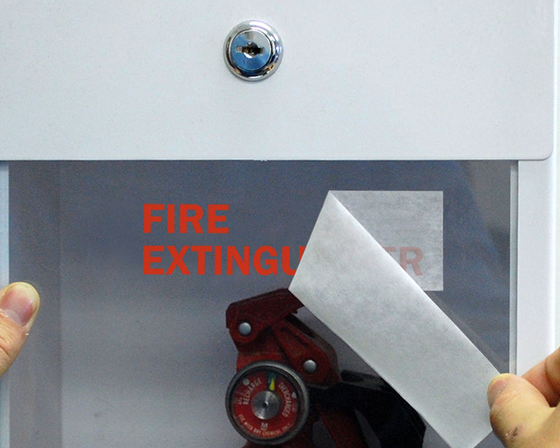 • • Perfect for glass cabinets. Fire Extinguisher Stickers and Fire Extinguisher Decals go on easily, so you can professionally apply on doors, walls, or glass.