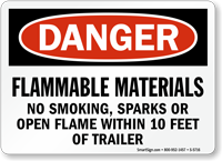 • • Choose from our varied selection of Flammable No Smoking Signs for the design and message that is right for your facility. Our gallery offers signage for flammable materials like oxygen, diesel fuel and more.