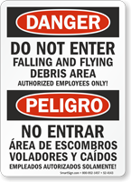 Flying object signs warn of the risk of debris, sparks, or materials being ejected from machinery or work areas. Common messages include "danger: flying debris" and "eye protection required." These are key components of general osha danger signs.