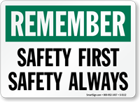 We carry bright, eye-catching safety slogan signs covering topics like safety first, think before you act, work safe go home, and many other motivational safety messages. Signs are available in aluminum, plastic, and vinyl formats for posting throughout a facility - in break rooms, production floors, entrances, and high-traffic areas where a visible safety culture reminder has the most impact on worker mindset.