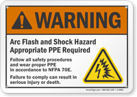ANSI Warning Sign: Arc Flash And Shock Hazard - Appropriate PPE Required, Follow All Safety Procedures