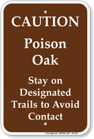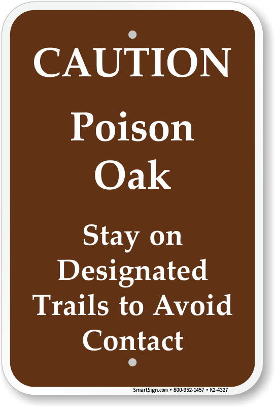 Poison Warning Sign: Caution - Poison Oak, Stay On Designated Trails To Avoid Contact