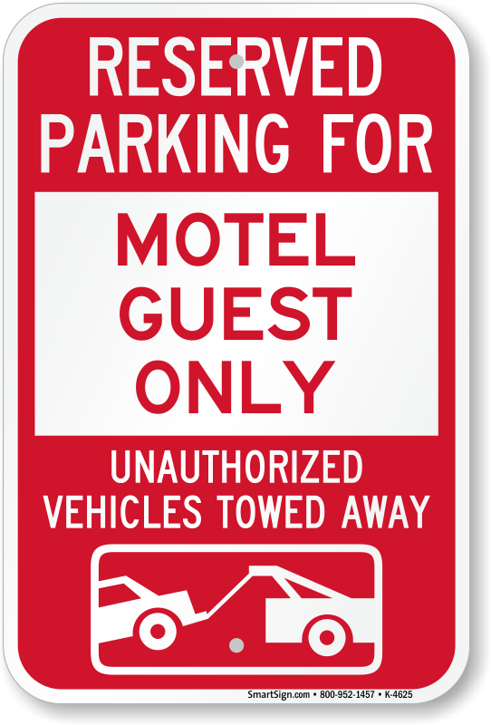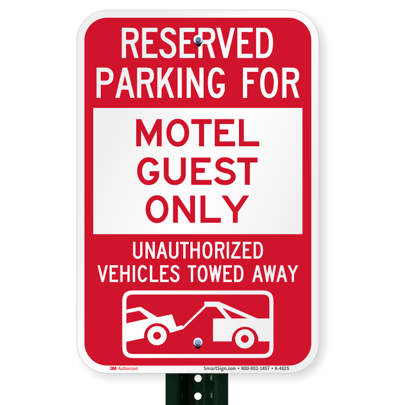 Parking Lot Sign: Reserved Parking For Motel Guest Only Unauthorized Vehicles Towed Away (With Tow Away Graphic)