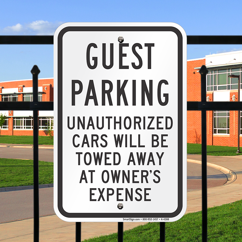 Reserved Parking Sign: Guest Parking, Unauthorized Cars will be Towed Away at Owner's Expense