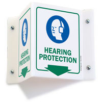 What'd you say? Exposure to loud noises, such as blasting, heavy machinery, explosions, fireworks, or jet engines can cause irreversible hearing loss. Use hearing protection signs to ensure the safety of your employees.
