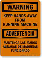 Yes, our bilingual keep hands clear OSHA danger sign and full range of English/Spanish options from our keep hands clear signs collection ensure all operators understand the hand hazard restriction regardless of their primary language, particularly important in manufacturing facilities with diverse multilingual machine operators where language barriers could result in a serious crush, cut, or entanglement injury.