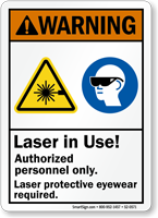 For maximum effectiveness, laser warning signs should be conspicuously posted at all entrances to areas where lasers are in use, as well as on equipment, to ensure personnel are aware of the hazard before exposure.