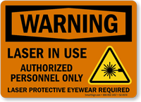 For maximum effectiveness, laser warning signs should be conspicuously posted at all entrances to areas where lasers are in use, as well as on equipment, to ensure personnel are aware of the hazard before exposure.