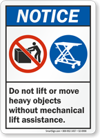 • • Choose from a variety of lifting signs with bold and familiar graphics, and “How to Lift” messages.
