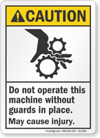Do not operate without guards in place sign