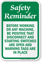 Yes. In addition to warnings, we offer signs that provide clear instructions for safe operation, such as "Lock Out Power Before Servicing" and "Do Not Operate Without Guards in Place." These signs help reinforce proper safety protocols at the point of use.