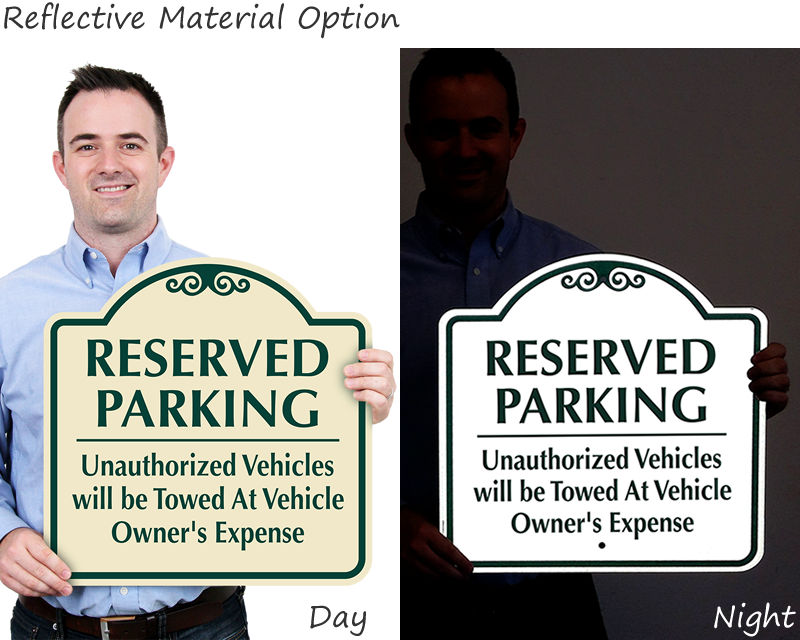 Yes, our custom designer parking sign is available in multiple color schemes and accepts your property name, logo, or custom text, making it a popular option for gated communities, boutique hotels, and corporate campuses where consistent, branded signage is part of the property's overall aesthetic.