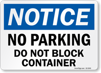 No Parking Dumpster Area Signs