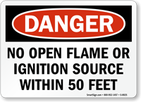 Yes. OSHA 29 CFR 1910.106 requires No Smoking and No Open Flames signs at or near flammable and combustible liquid storage areas. Our combination no smoking/no open flames signs satisfy this requirement with both prohibitions on a single, clearly marked sign - available in the OSHA Danger header format for areas where ignition of flammable vapors or liquids would pose an immediate life-threatening hazard.