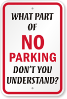 Funny parking signs can be surprisingly effective because they attract attention and get read more often than plain warning signs, and our parking here fuggedaboutit humorous sign is a great example of a sign that gets noticed, gets laughs, and still gets the message across to unauthorized parkers.
