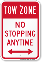 Yes, our no stopping anytime tow zone sign combines the stopping restriction with a firm tow warning, giving property owners a clear enforcement basis for removing non-compliant vehicles from private roads, parking lots, and access lanes.
