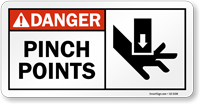 Yes, OSHA and ANSI Z535 require that machinery hazards including pinch and nip points be clearly marked with appropriate warning signs, and our pinch point signs are available in OSHA and ANSI-compliant Danger, Warning, and Caution headers with the correct color schemes and symbol pictographs to satisfy regulatory requirements at every piece of hazardous machinery.