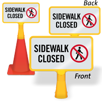 Size: 8" x 15" Material type: Reflective “No-Tip” Traffic Cone Sign - Two Sides Printed