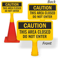 We offer cone top signs in a wide variety of messages including our wet floor ConeB oss sign, caution this area closed do not enter ConeB oss sign, and custom options with stock designs that ship the same day for immediate deployment.
