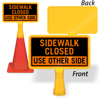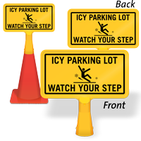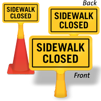 Size: 8" x 15" Material type: Reflective “No-Tip” Traffic Cone Sign - Two Sides Printed