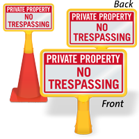 Size: 8" x 15" Material type: Reflective “No-Tip” Traffic Cone Sign - Two Sides Printed