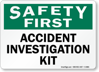 Designed with a green header with white letters and a white background with sign message in black, our safety first signs adhere to the OSHA sign design guidelines as defined in OSHA standard 1926.200, (e) safety instructions signs. We also offer ANSI-compliant safety first signs that have a safety first header, sign legend, and a pictogram in the format prescribed by ANSI.