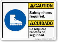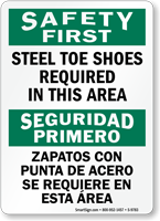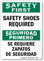 Yes, our safety shoes required caution bilingual sign and full range of English/Spanish options ensure all workers understand the foot protection requirement regardless of their primary language, especially valuable in warehouses, distribution centers, and manufacturing facilities with diverse multilingual workforces.