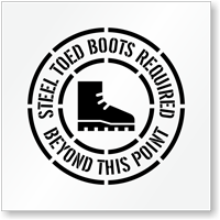 Yes, our customizable safety shoe sign templates allow you to add specific ASTM footwear standards, protection ratings, toe cap requirements, or additional PPE that must be worn alongside protective footwear, and our steel toe shoes required in this area sign is one example of our more specific stock options for facilities with defined footwear specifications.