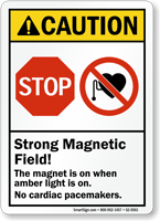Mark devices, parts of workplace, and equipment producing strong magnetic fields with our bold and clear Magnetic Field Safety Labels. Labels effectively warn patients with pacemakers, ICDs, neurostimulators, or any kind of metallic, electronic, magnetic, or mechanical implants in the body.