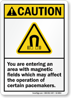 Mark devices, parts of workplace, and equipment producing strong magnetic fields with our bold and clear Magnetic Field Safety Labels. Labels effectively warn patients with pacemakers, ICDs, neurostimulators, or any kind of metallic, electronic, magnetic, or mechanical implants in the body.