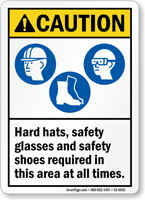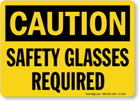 Safety glasses signs are required by OSHA at the entrances to all work areas where employees are exposed to potential eye hazards. This includes, but is not limited to, areas with flying particles, molten metal, liquid chemicals, acids or caustic liquids, chemical gases or vapors, or potentially injurious light radiation.