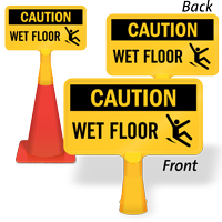 You may want to pick a wet floor sign with a graphic on and with the message conveyed in both English and Spanish languages to ensure your message reaches a wider audience. When choosing sign types, consider your usage and placement requirements to select from easy-to-store foldable standing floor signs, wet floor tags, wall signs, and cone sleeves and tops. Depending on your facility, you may even opt for barricades to restrict entry to wet floor areas.